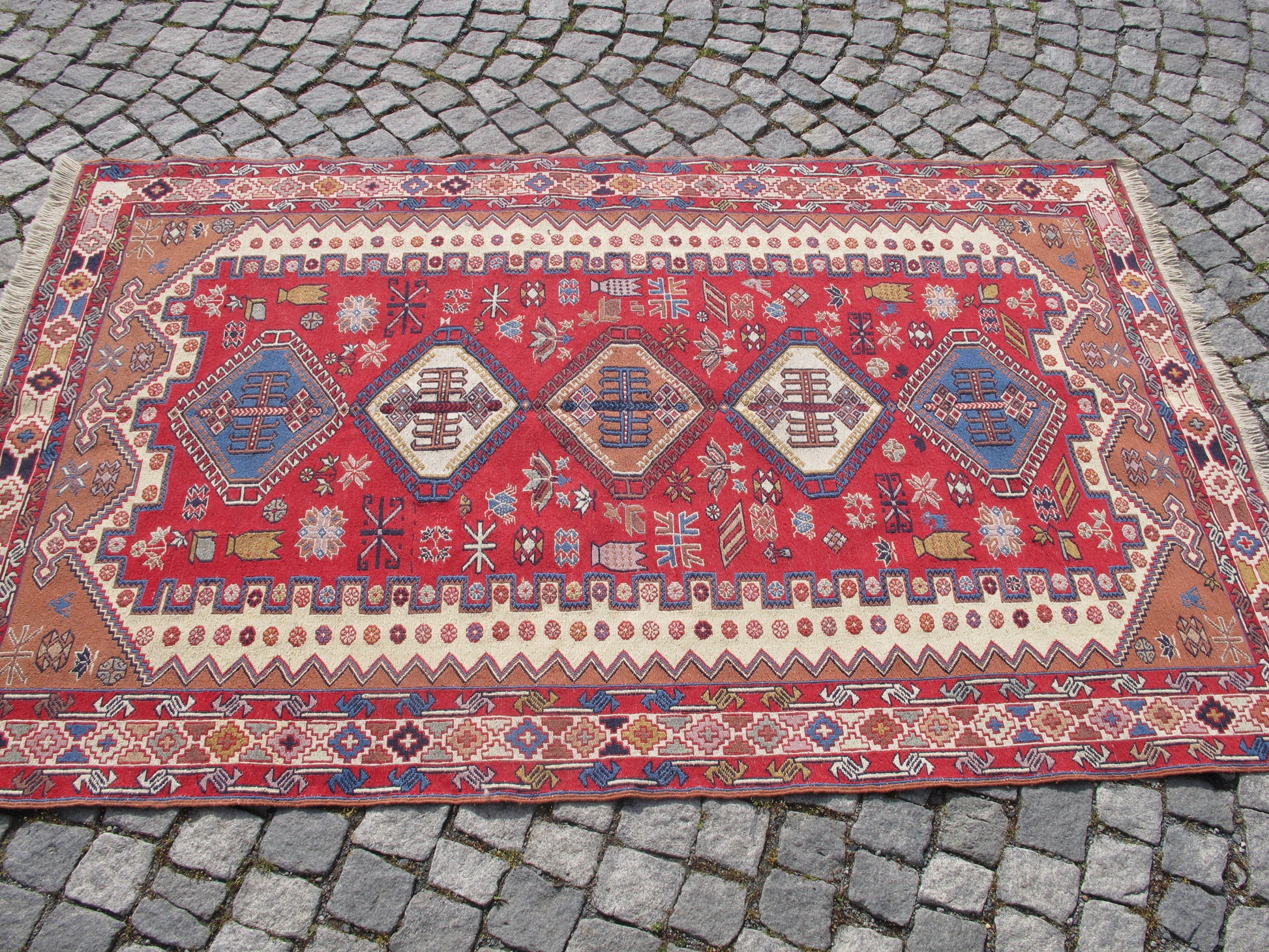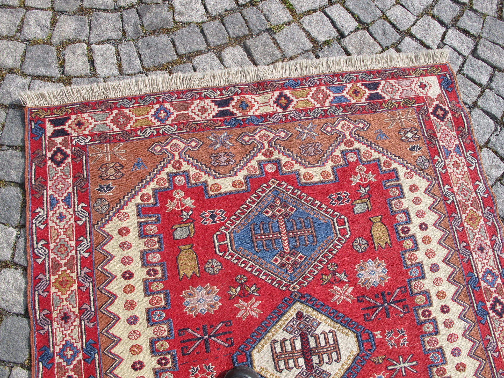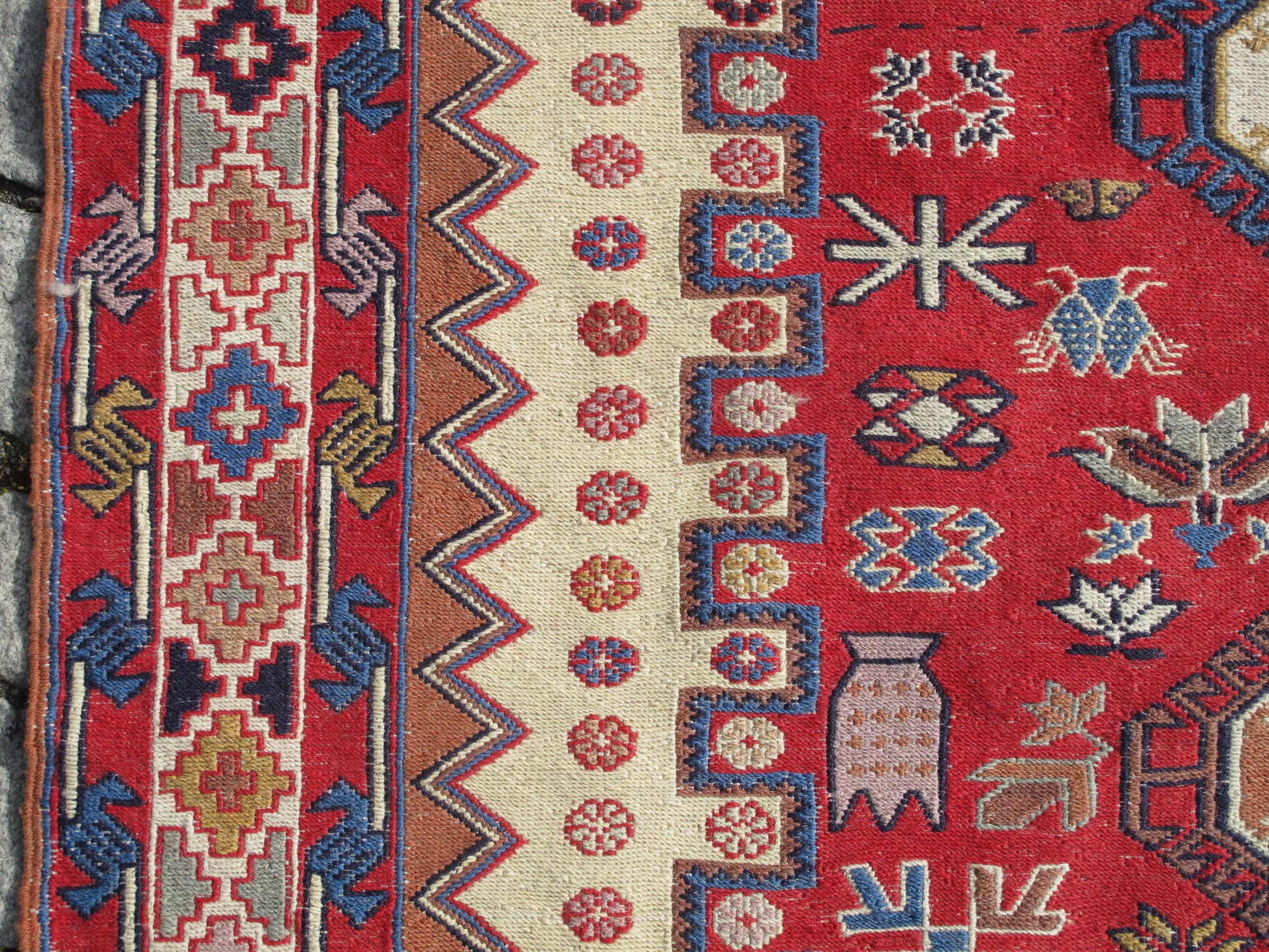- Weaving Technique: Soumak (Sumak) - a special flat-weave method creating raised, embroidered-like patterns