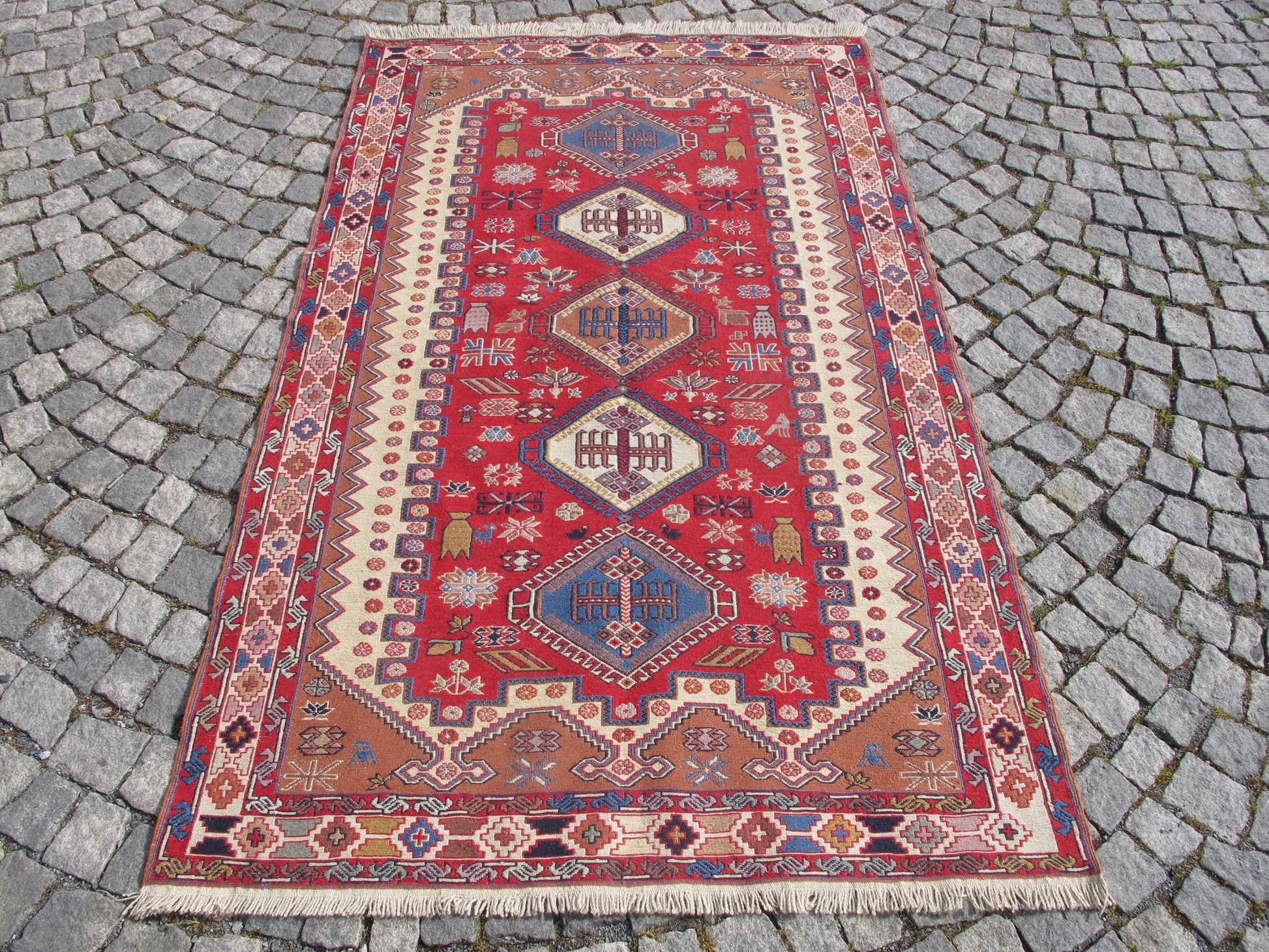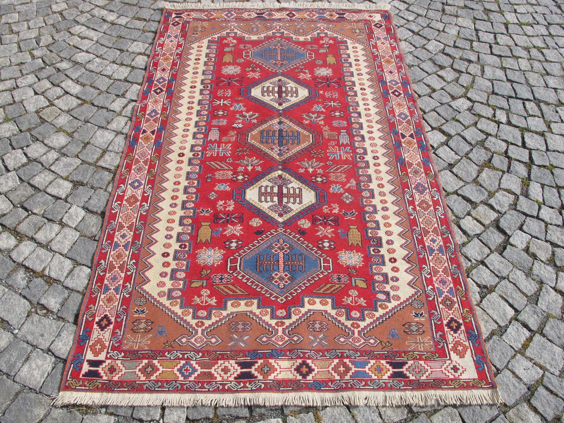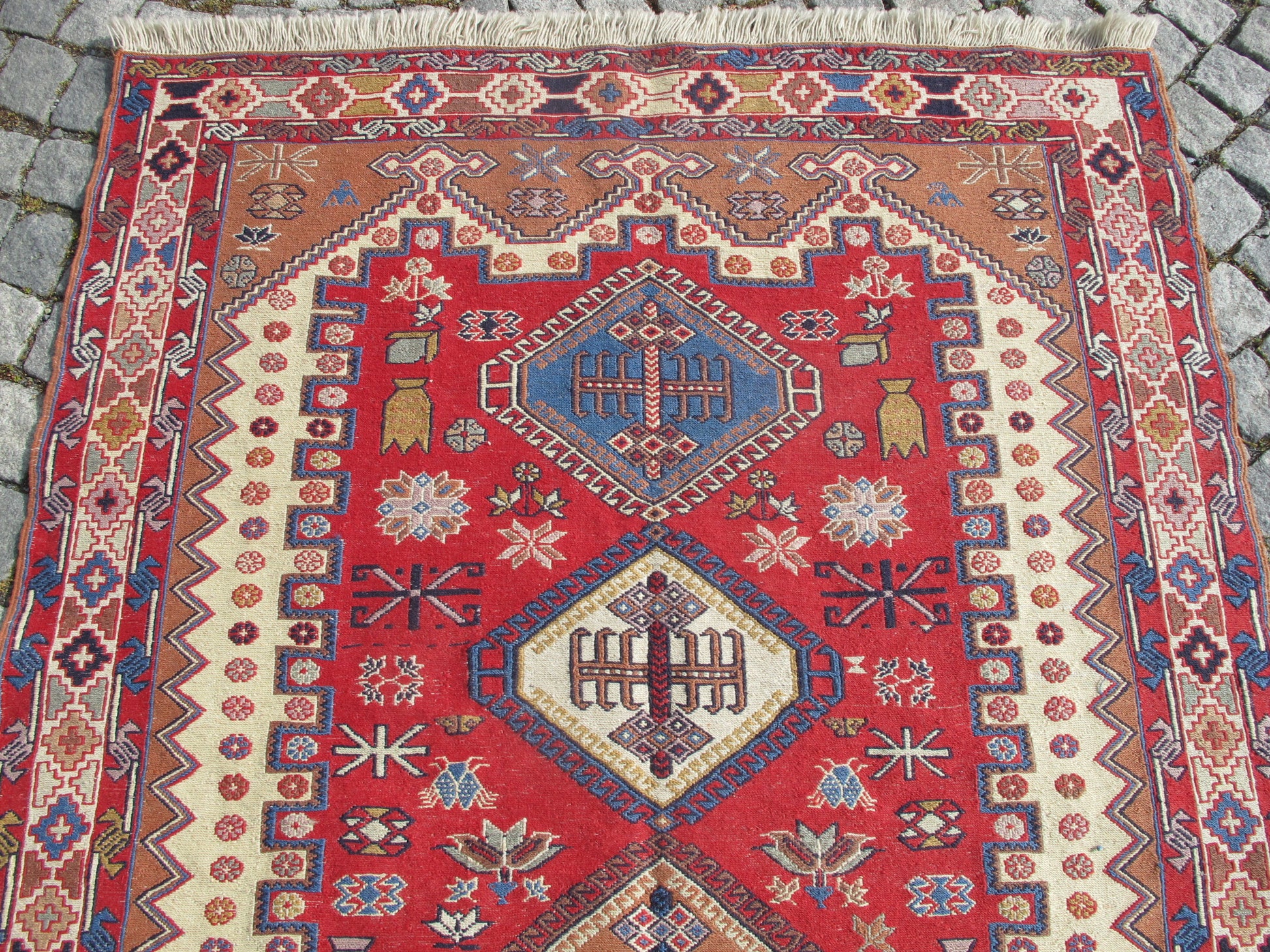 - Weaving Technique: Soumak (Sumak) - a special flat-weave method creating raised, embroidered-like patterns