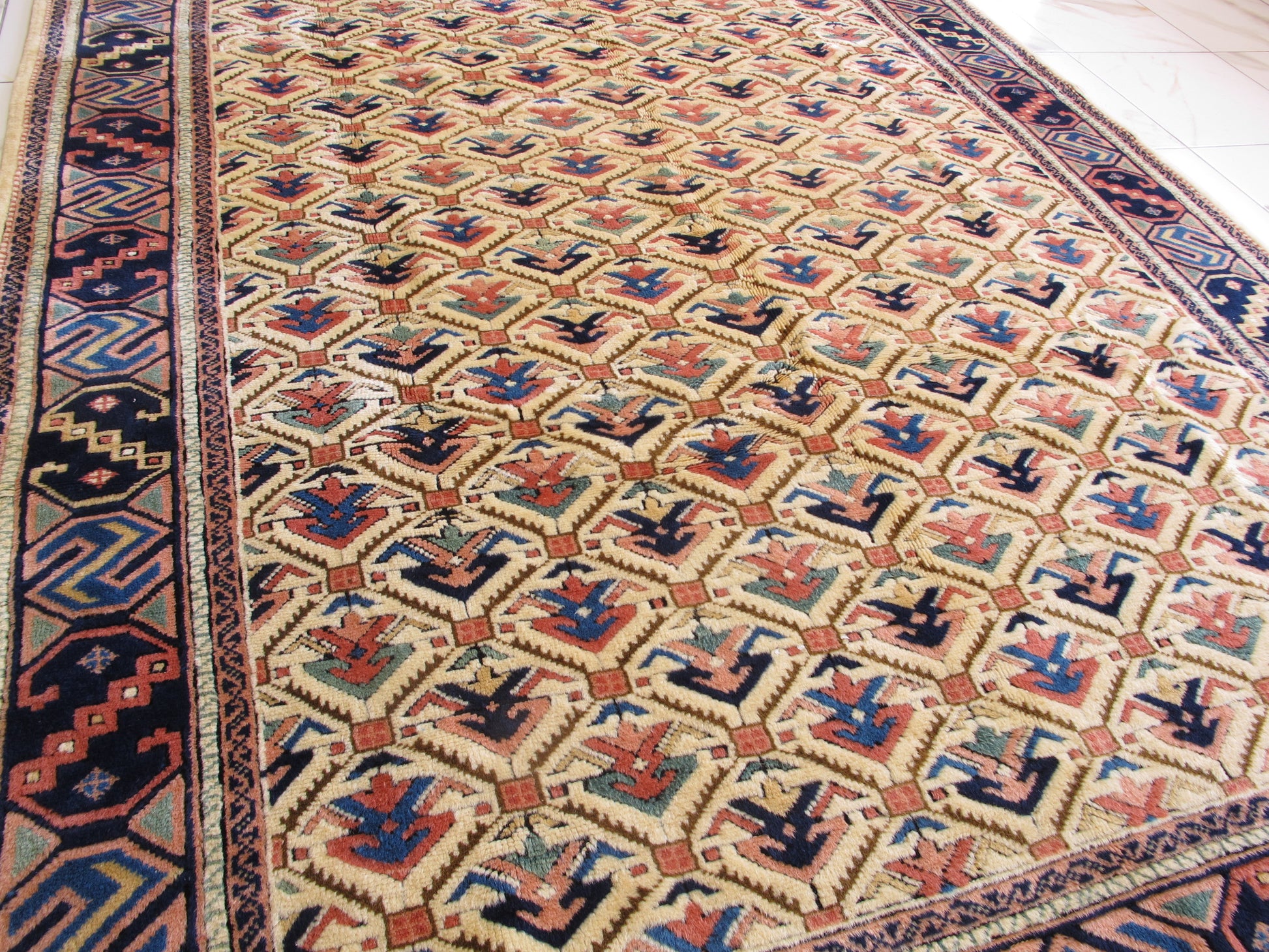 All wool Antique Turkish tribal Pattern top quality Carpet from 1980's . Excellent condition, washed clean ready to use.