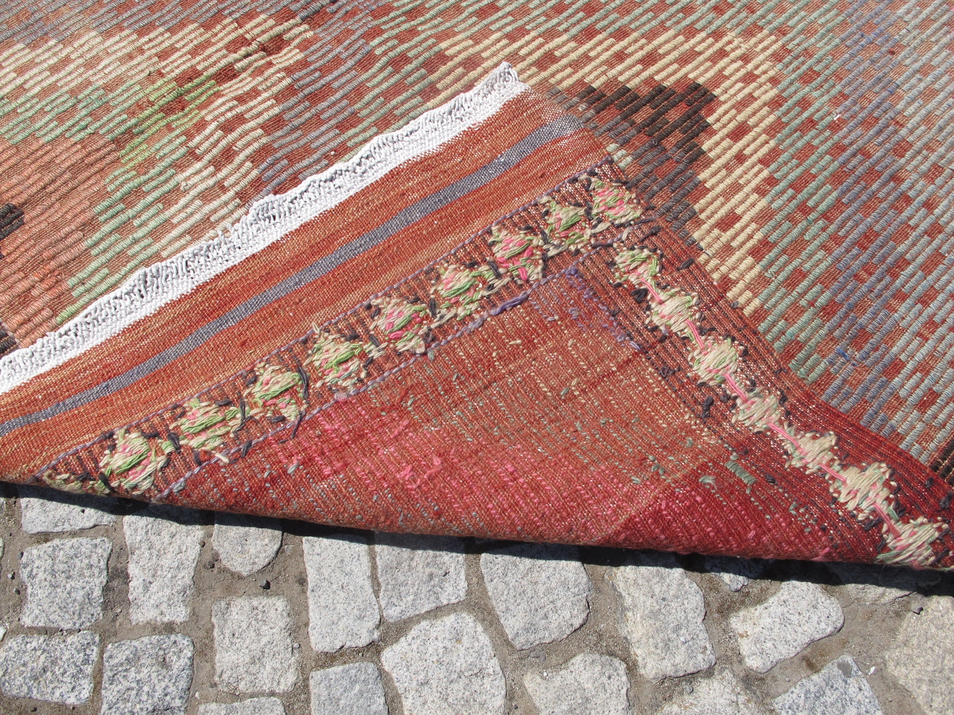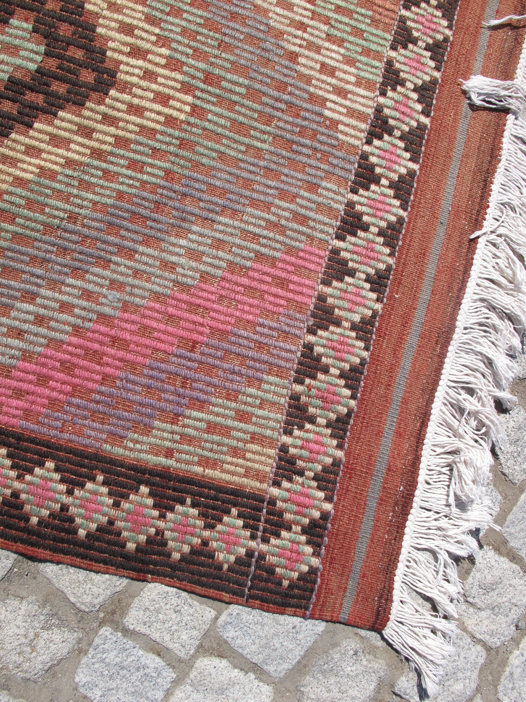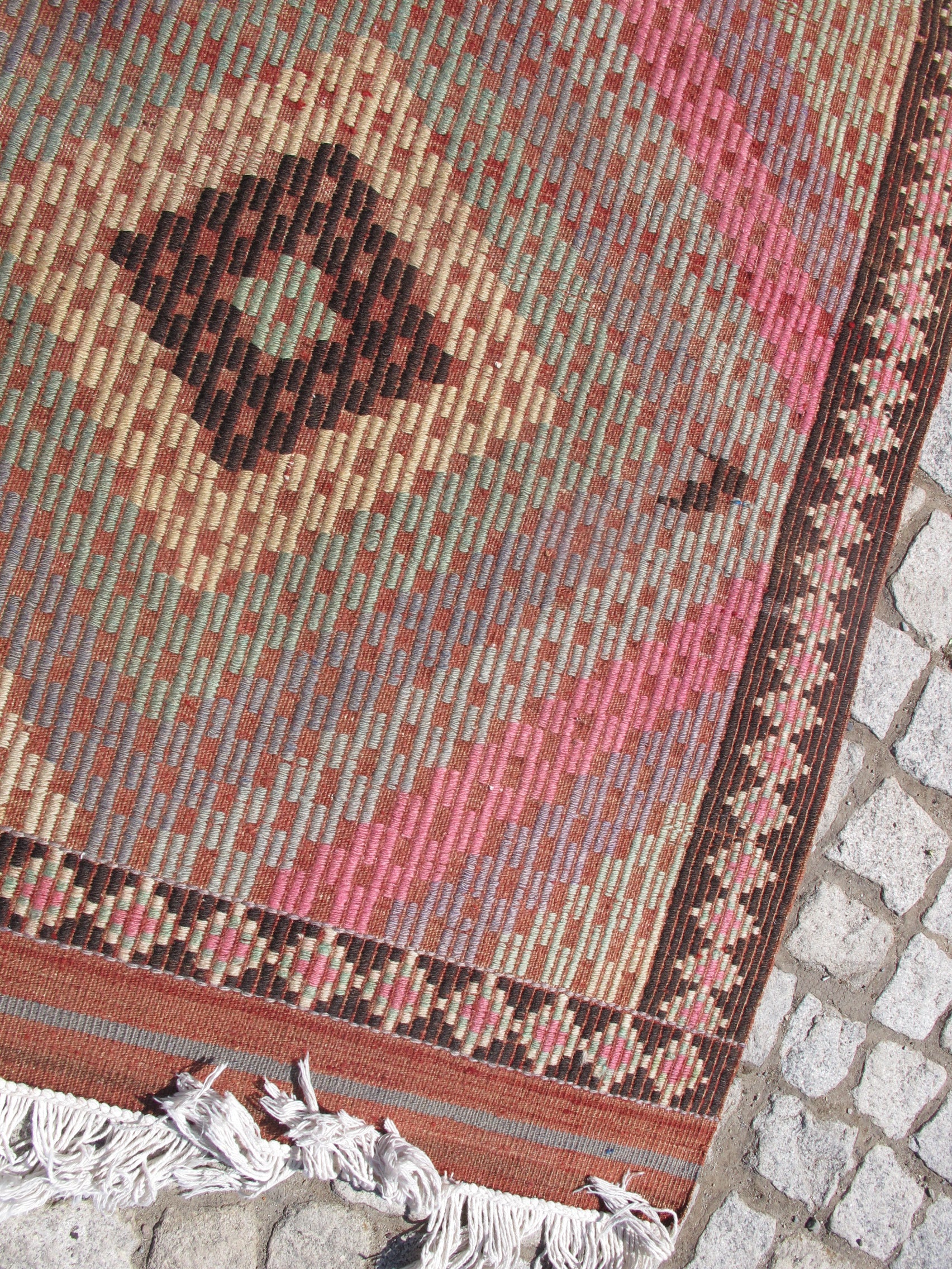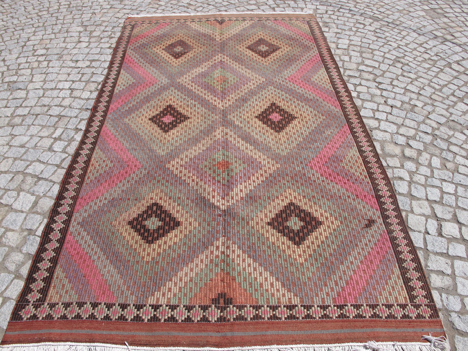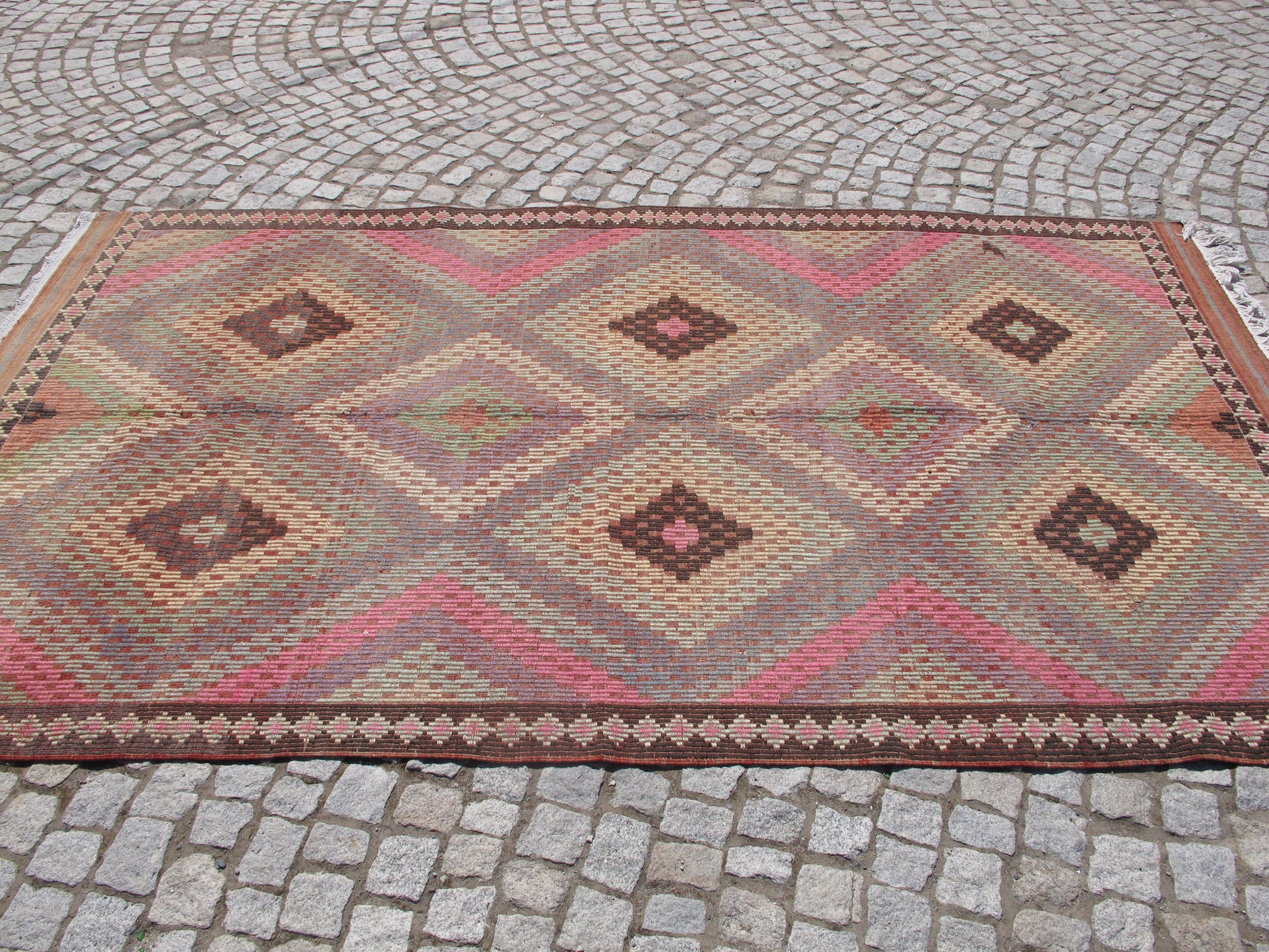 This authentic kilim has been professionally cleaned and is ready to enhance your space. The generous size makes it perfect for living rooms, dining areas, or master bedrooms, while the subtle pastel tones add warmth without overwhelming your décor.